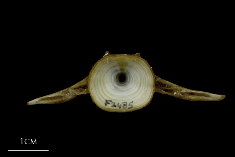 European conger precaudal vertebra anterior view